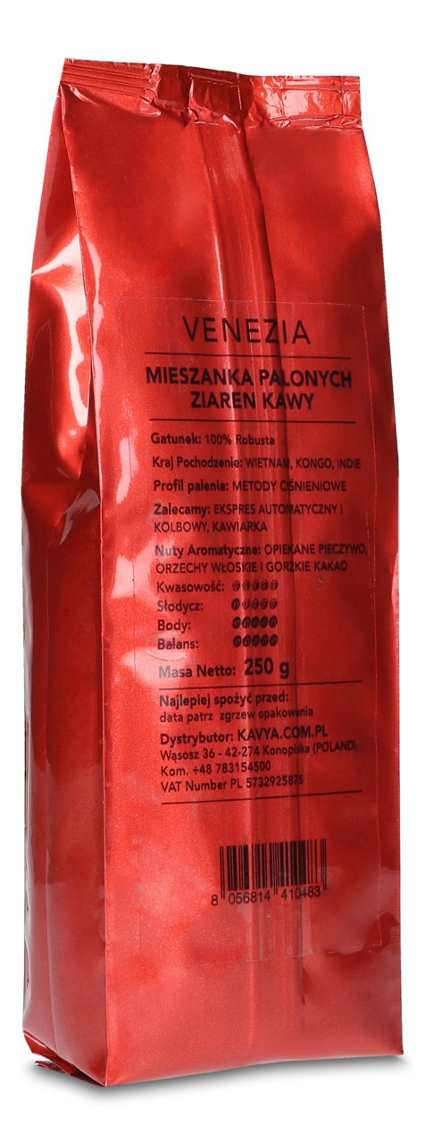 Antichi Sapori Estensi VENEZIA coffee beans are an exceptional blend with rich body and a strong, clean temperament, enriched with a subtle spicy aftertaste. In every cup, you’ll experience the uniformity and roundness of flavor, while the crema stands out with excellent durability and a non-intrusive body, making it an ideal choice for lovers of intense espresso.