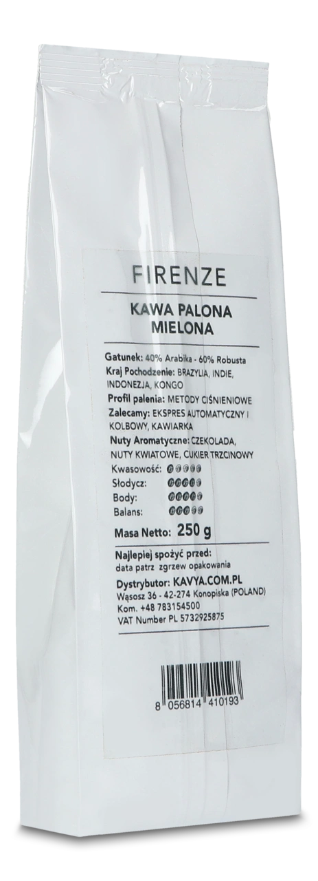 Antichi Sapori Estensi FIRENZE to mielona kawa stworzona z doskonałej mieszanki ziaren Arabica i Robusta, wypalana rzemieślniczo z dbałością o każdy detal. Zachwyca czekoladowymi nutami, otulającą kremowością i delikatnym, trwałym posmakiem bez nadmiernej kwasowości. Idealna na śniadanie – doskonale komponuje się zarówno ze słodkimi, jak i słonymi wypiekami.