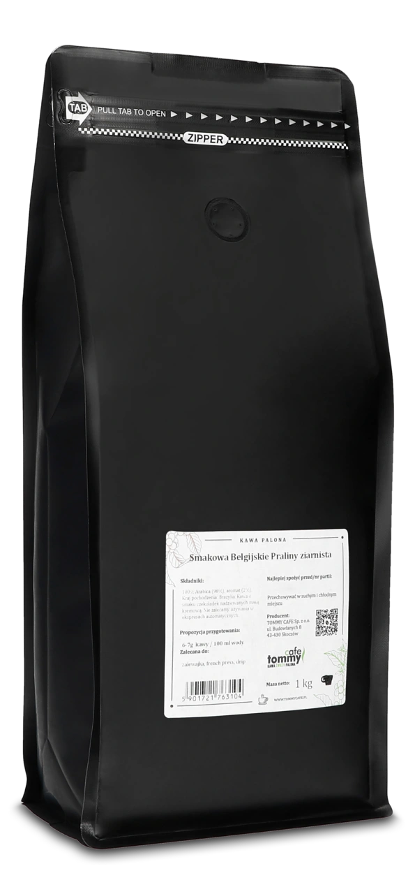 Tommy Café Belgijskie Praliny to kawa ziarnista stworzona z myślą o tych, którzy uwielbiają połączenie wyrazistej Arabiki z wyjątkowymi, deserowymi nutami smakowymi. Ta aromatyzowana kawa zachwyca intensywnym, głębokim smakiem klasycznej kawy wzbogaconym o wykwintny posmak belgijskich pralin – czekoladowych, kremowych, z lekką nutą orzechową. To prawdziwa rozkosz dla podniebienia i świetny sposób na urozmaicenie codziennego rytuału picia kawy.